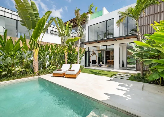 De 10-kamer Aquamarine Tanah Barak Villa Canggu ligt op ongeveer 6 km van de Pura Tanah Lot en beschikt over een zwembad op een terras voor een aangenaam verblijf.